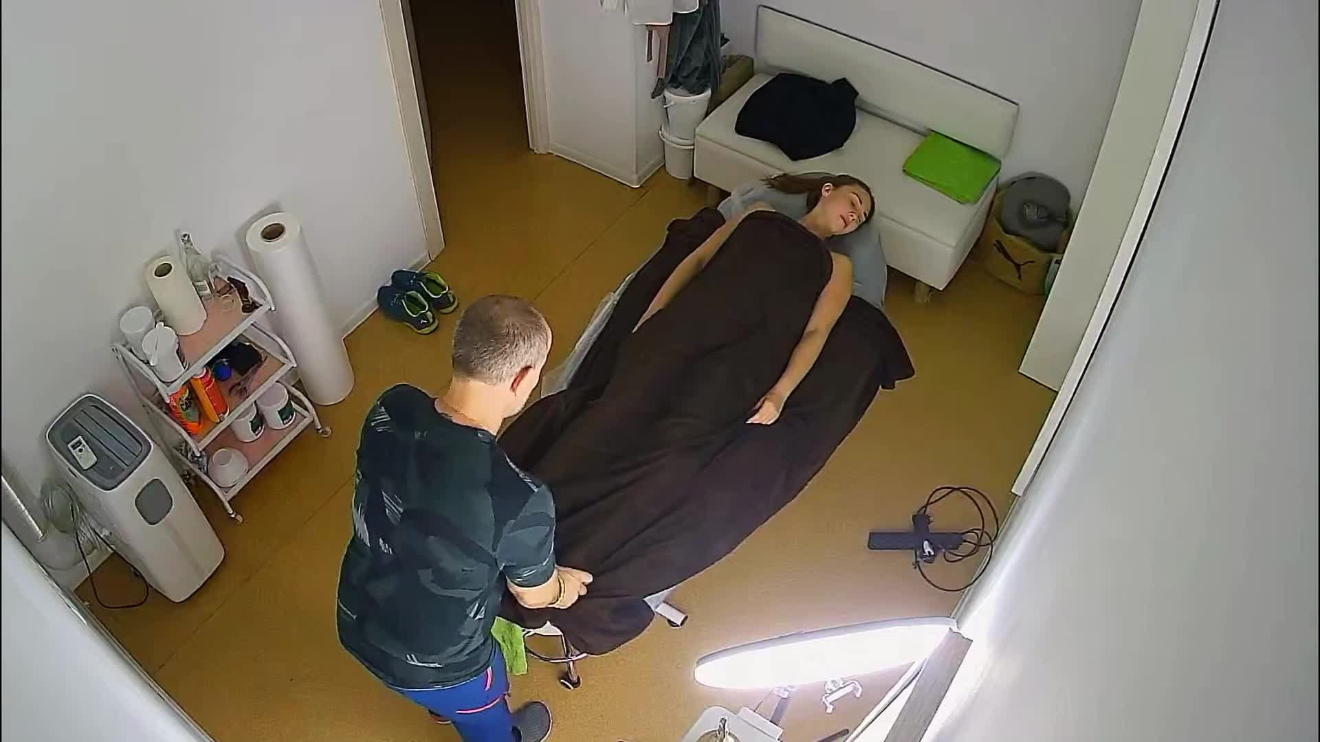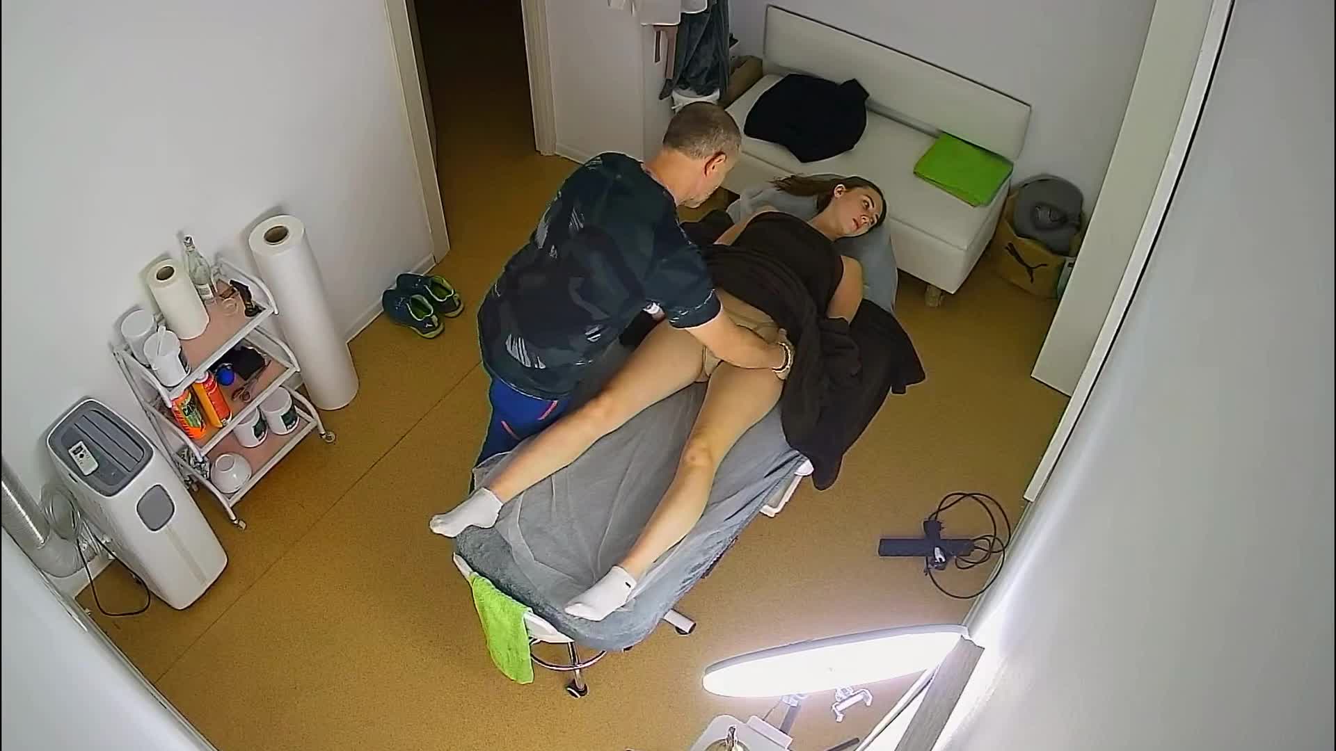 Массажист спортклуба уговорил девушку спортсменку снять трусики во время сеанса массажа.В конце процедуры попытался склонить её к минету но она не согласилась.