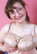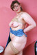 Толстожопая бабушка Джуди позирует возле столика.
