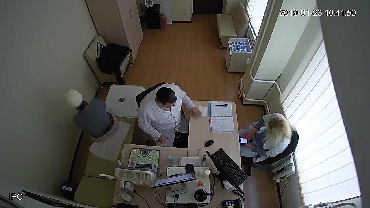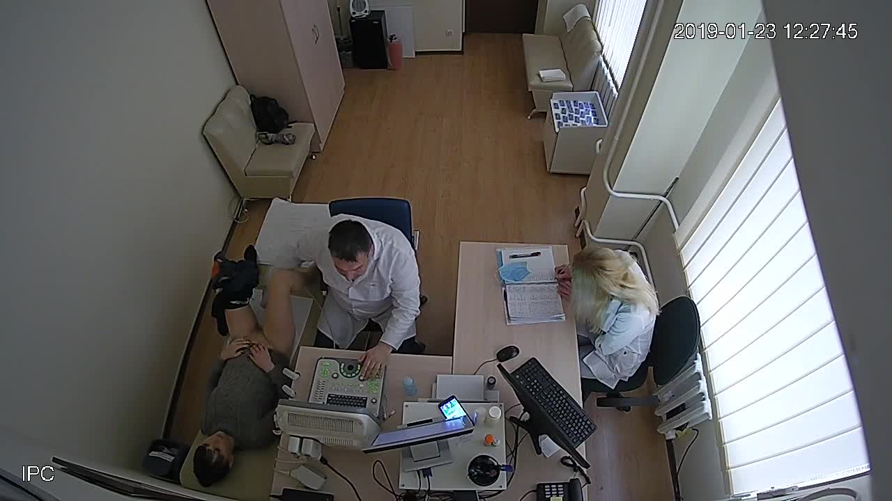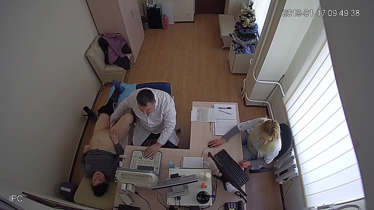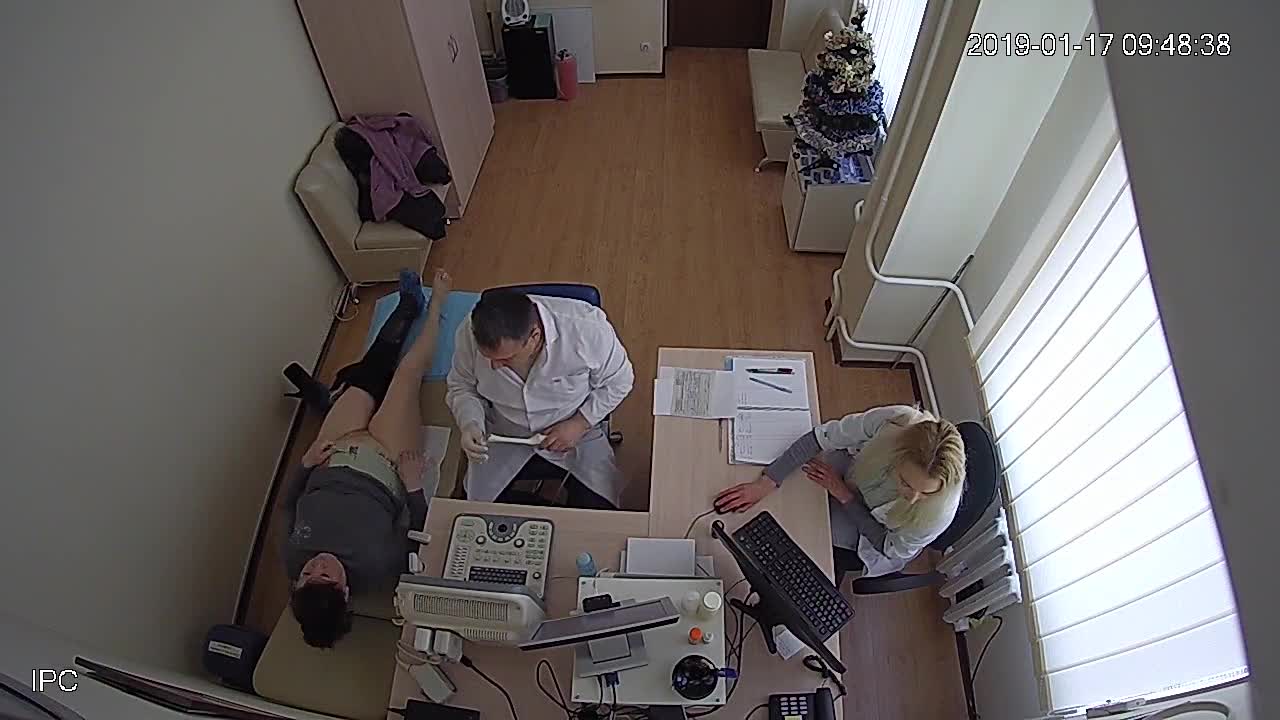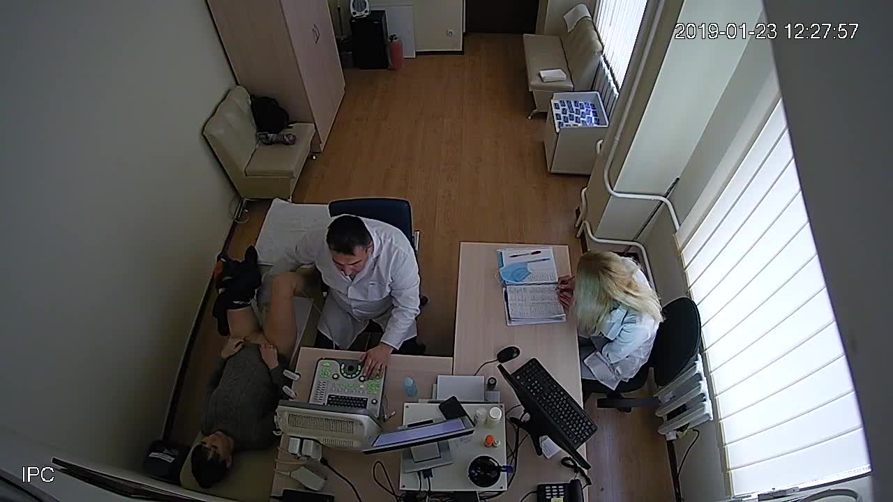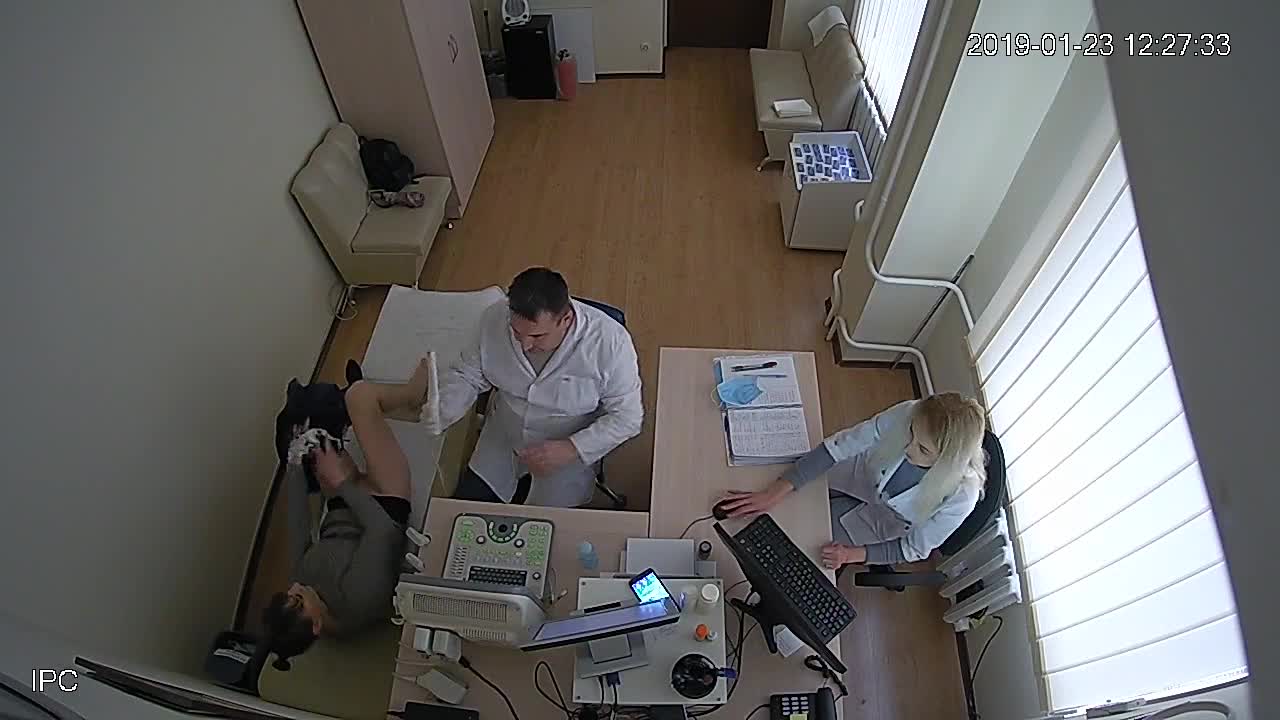 Скрытая камера в кабинете врача снимает интимное обследование двух пациенток.Во время процедуры доктор задает женщинам очень личные вопросы.