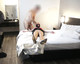 Порно фотосессия в отеле моей жены в блестящих телесных колготках и юбке.