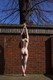 Длинноволосая красавица с маленькой, симпатичной грудью, украшенной крупными татуировками, сфотографирована обнаженной во дворе зимой.