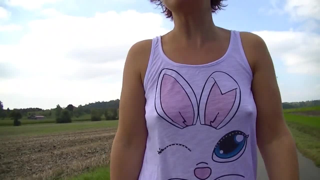 Озорная и симпатичная фрау! Чего на просторе прямо на дороге вытворяет