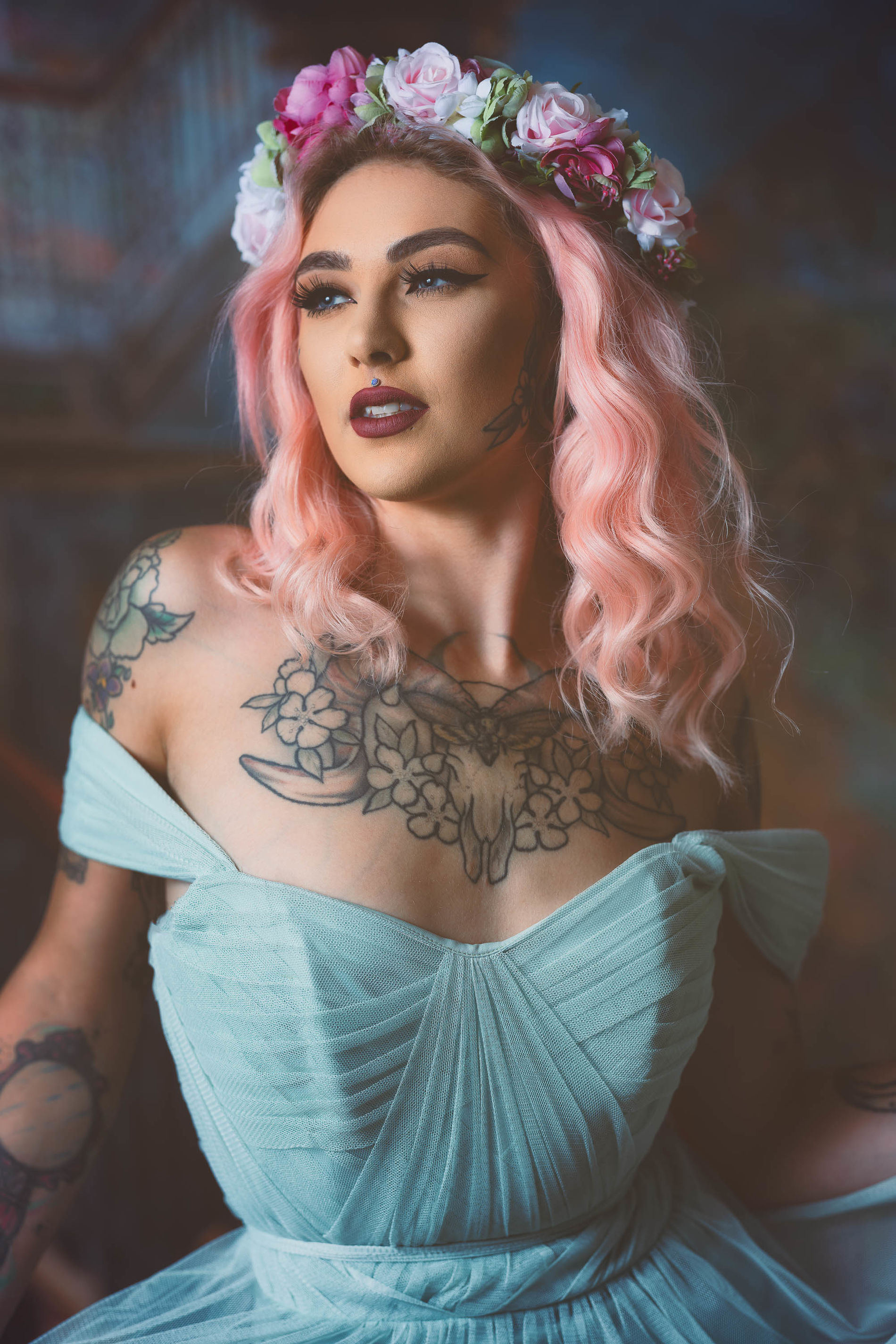 Татуировки, пирсинг, розовые волосы — и много эротизма.