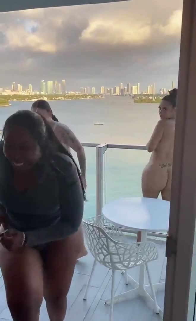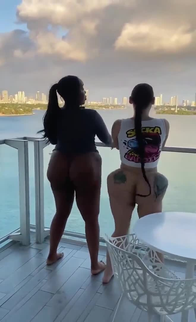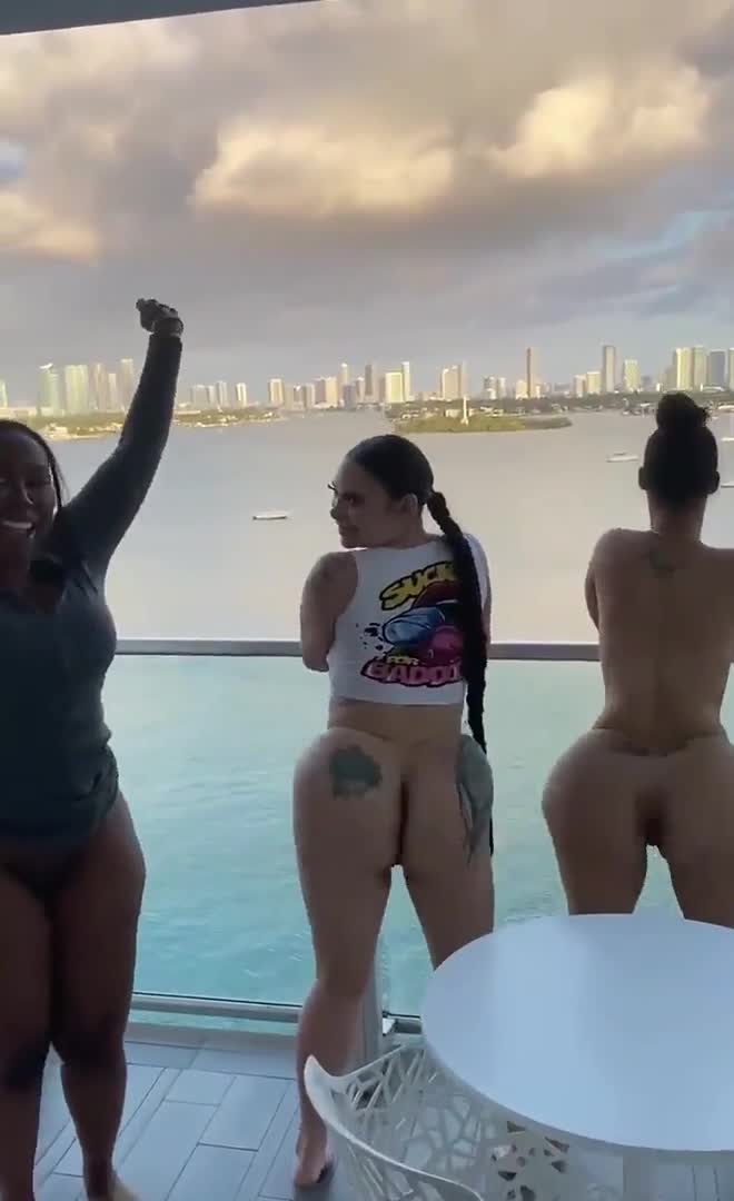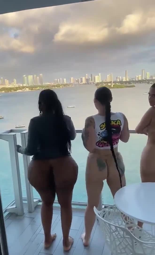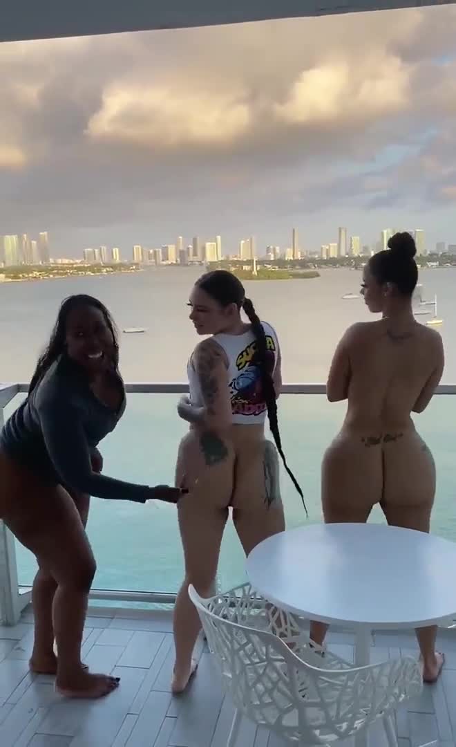 Три девушки хлопают большими ягодицами