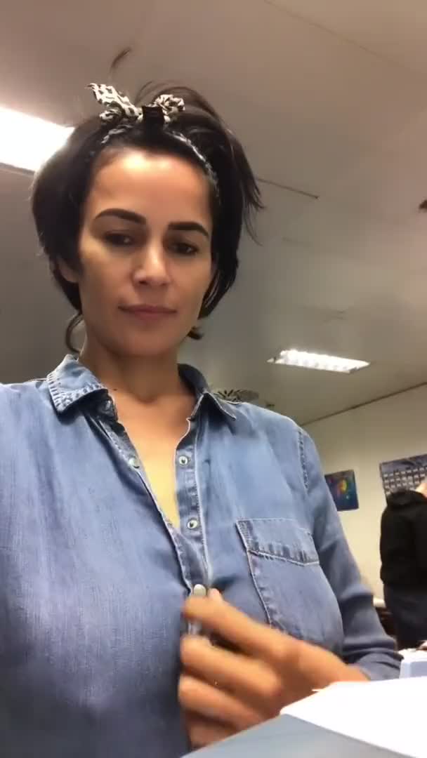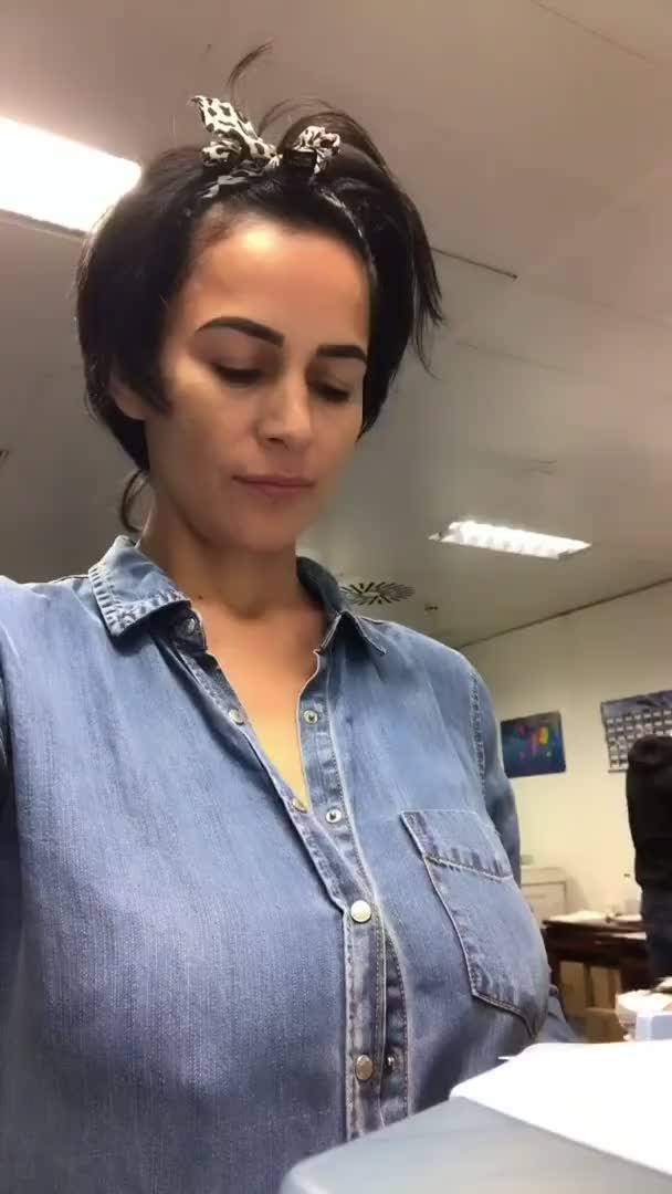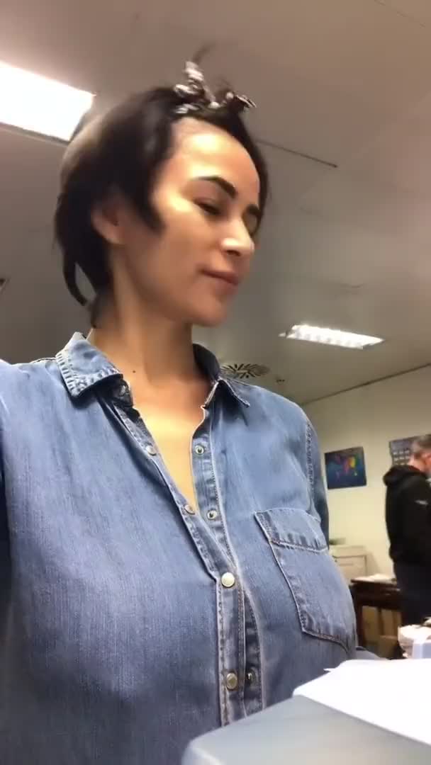 Она показала свою грудь в офисе.