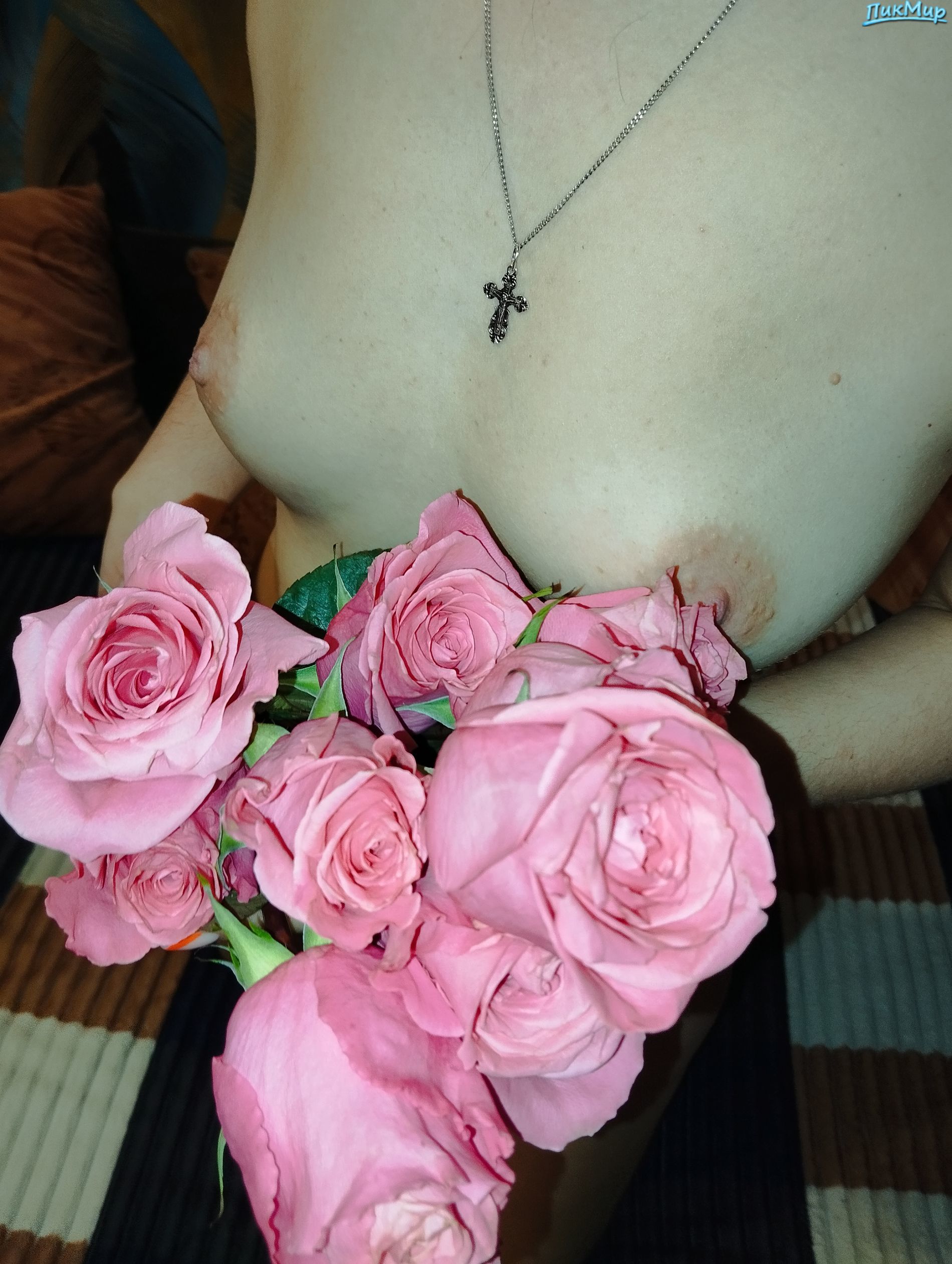 Шлюха жена с розами, подаренными ей любовником, дарит ей цветы, а потом ебёт на съемной хате как последнюю блядину