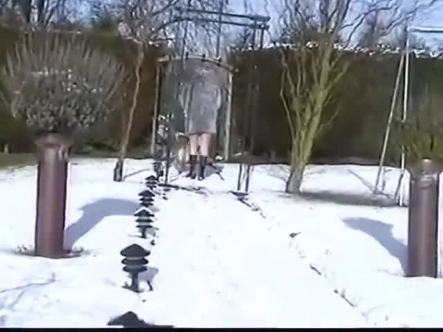 Решила парочка свои чувства к сексу освежить.Прогулкой по свежему снегу двора.