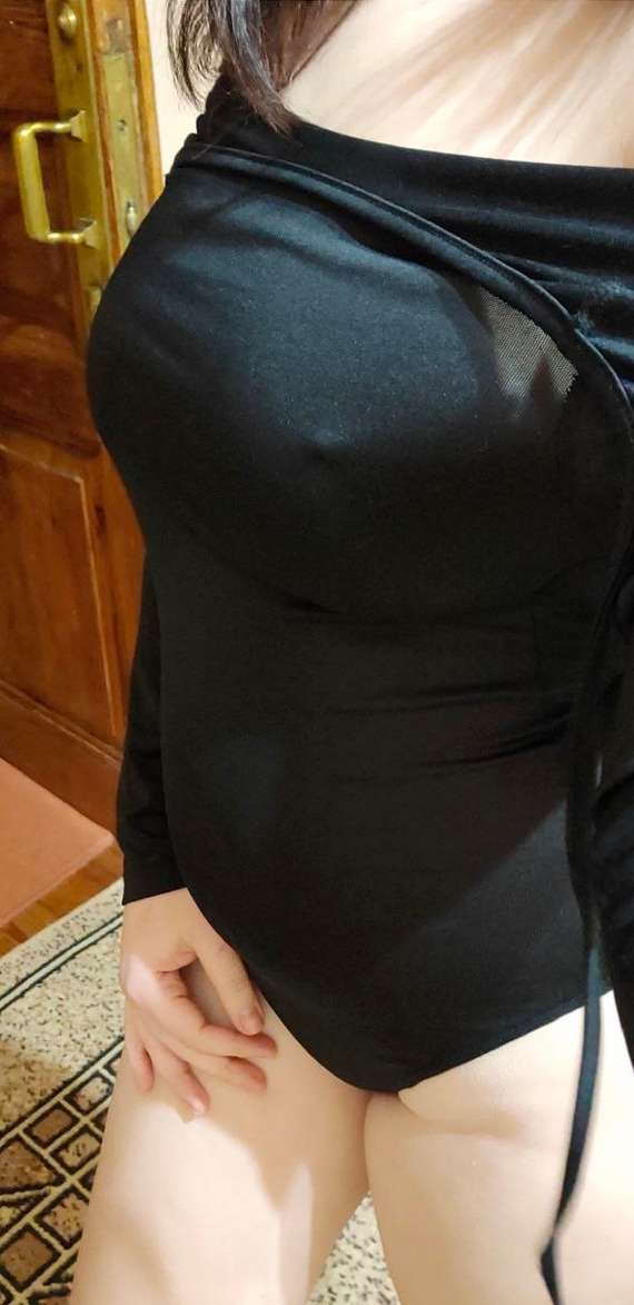 Девушка в черном боди демонстрирует свои прелести