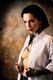 Необычная модель с декольте и рукой, покрытыми выразительной татуировкой.