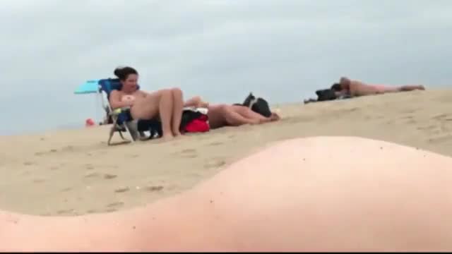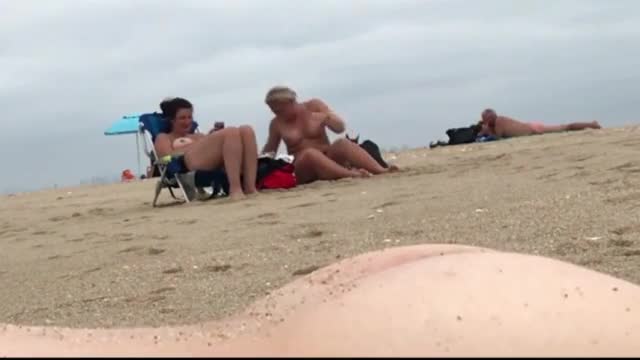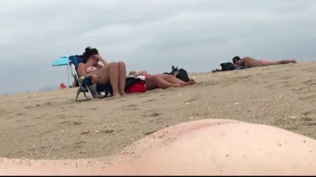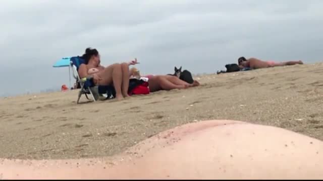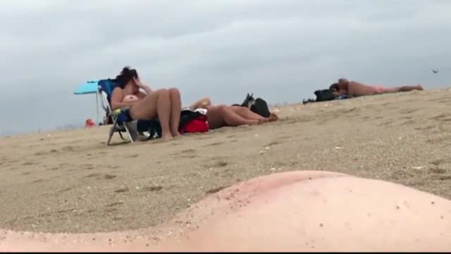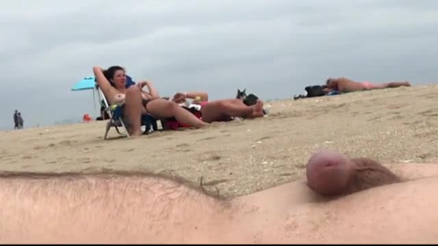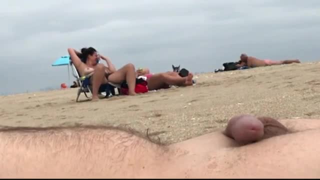 Мужчина с маленьким пенисом кончет и снимает на скрытую камеру реакцию двух женщин, загорающих на пляже неподалеку.
