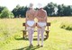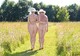 Нарядные мамзели. Дедушки смотрят из за кустов с биноклями.