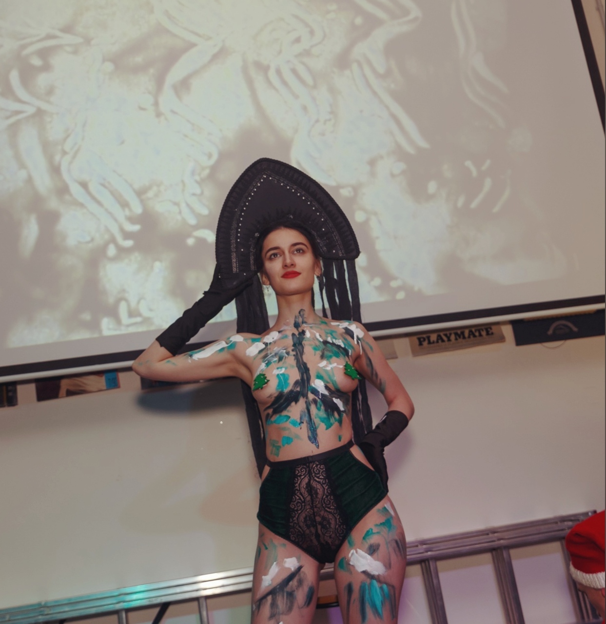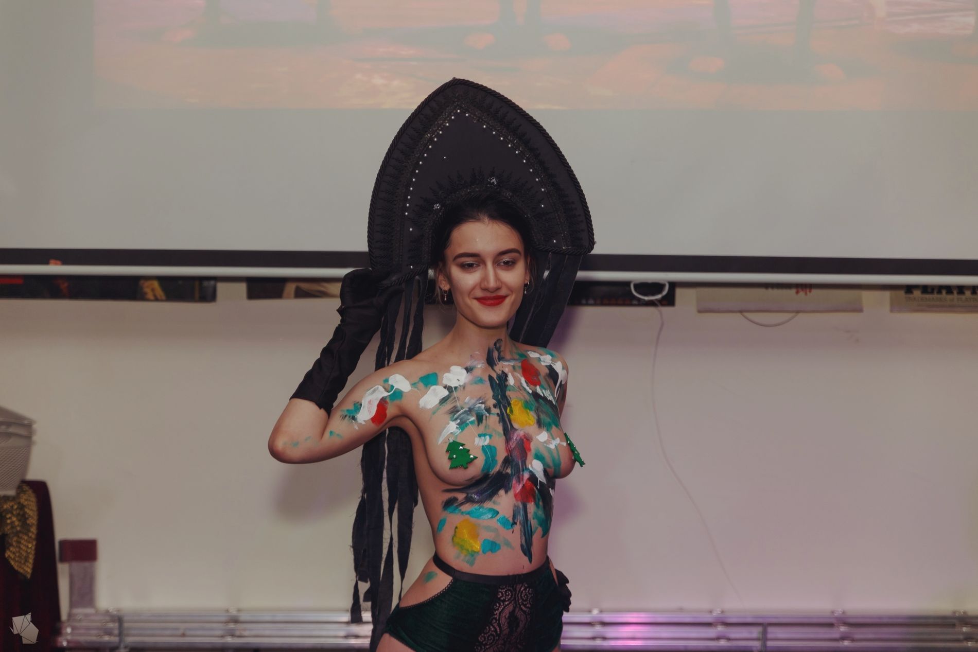 В музее про это был такой перфоманс, девушку в кокошнике разрисовывали.