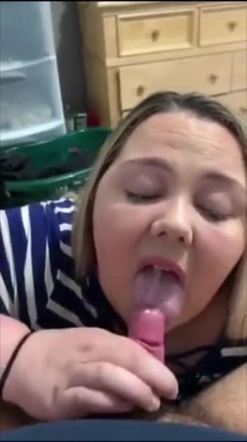 Красивая пышулька;) зато она счастлива и довольна перекусила спермочкой)) представляю как её пиздёнка течёт и скорее всего она кончила тоже;)