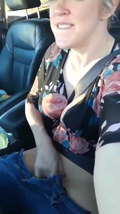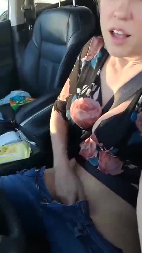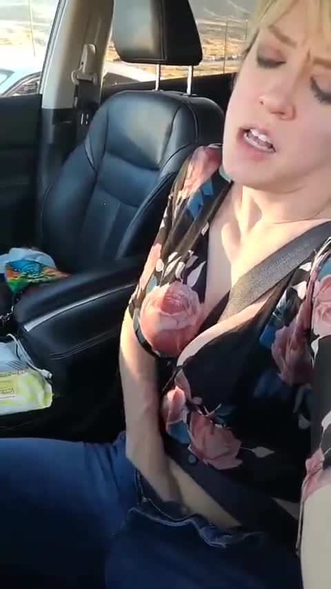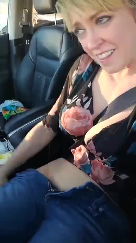 Зрелая дамочка дрочит в машине и кончает.