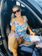 Блондинка весело радуются лету и показывает себя во всей красе