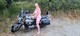 Обнаженная женщина-мотоциклистка