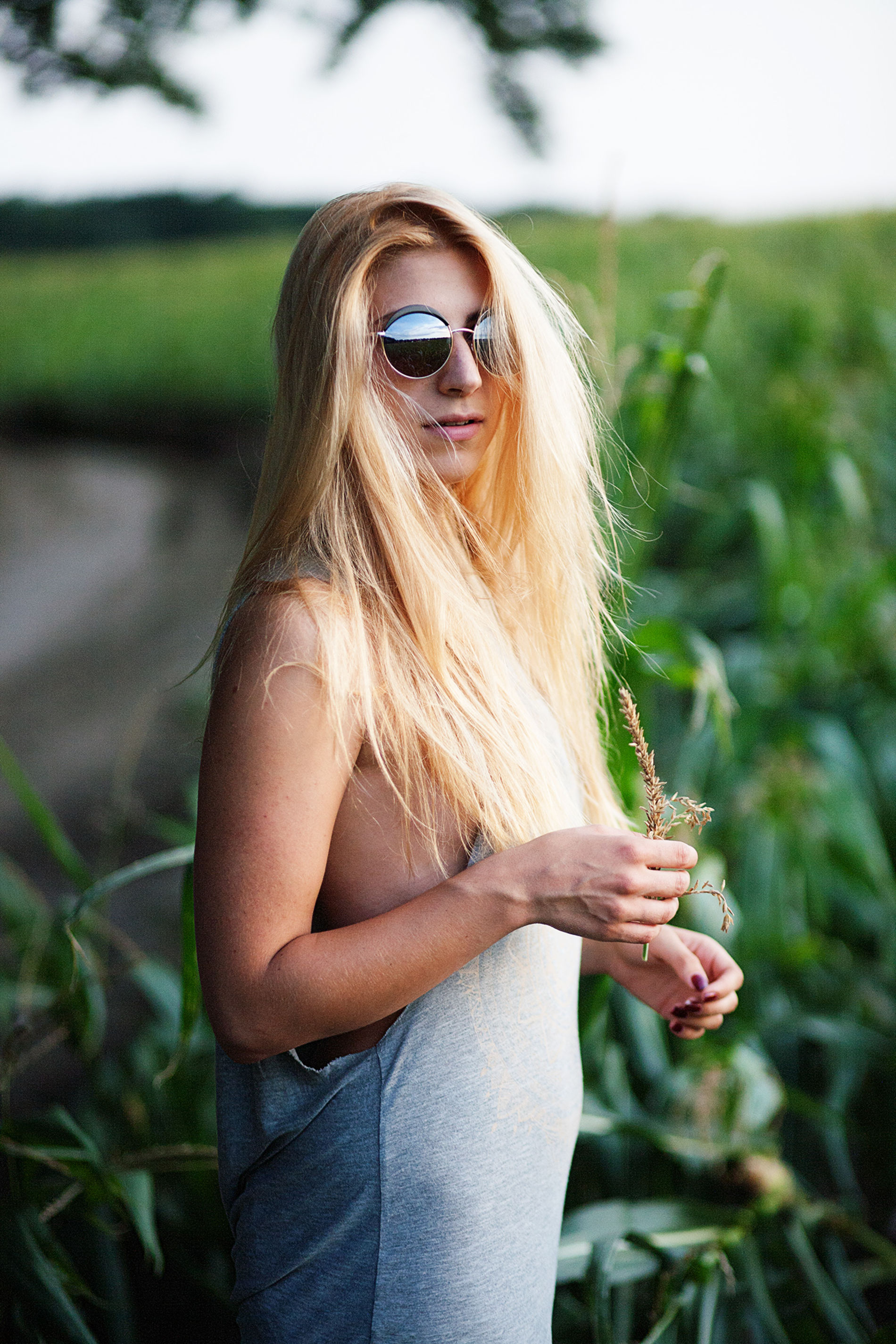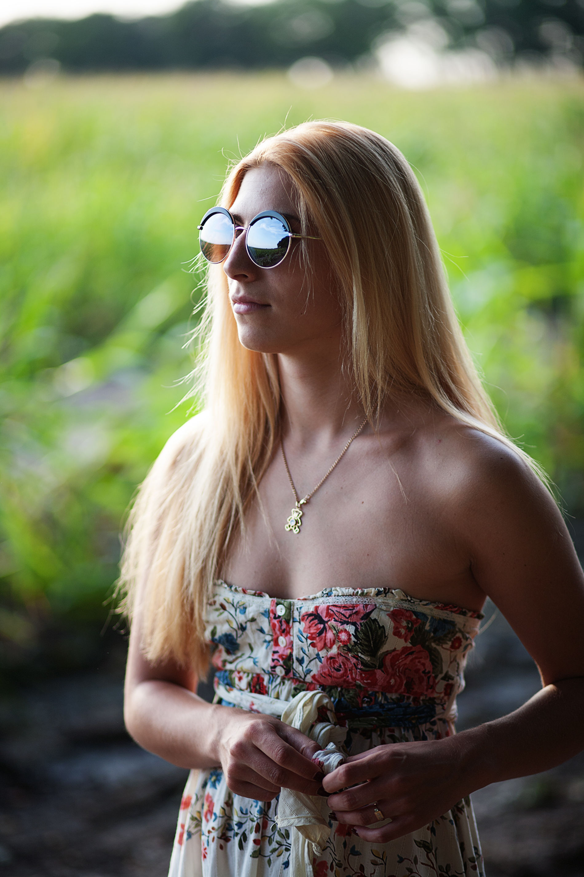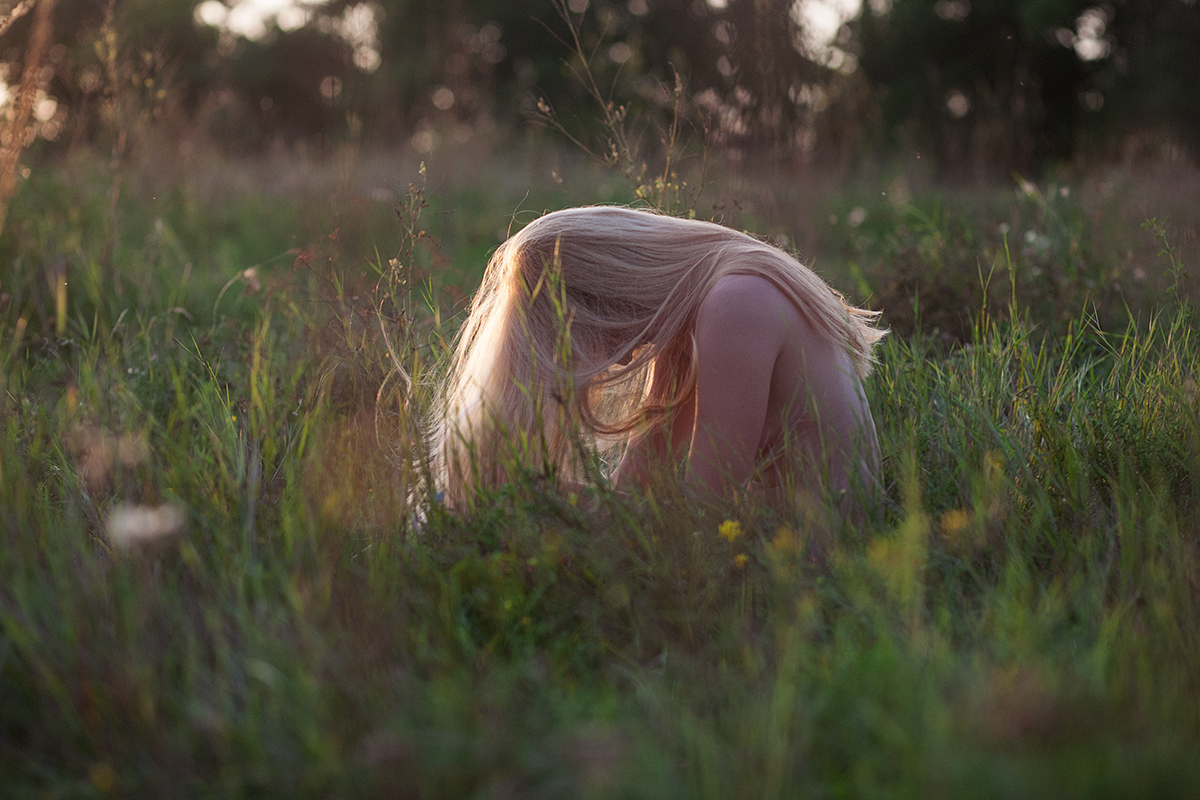 Красивая блондинка на весеннем лугу