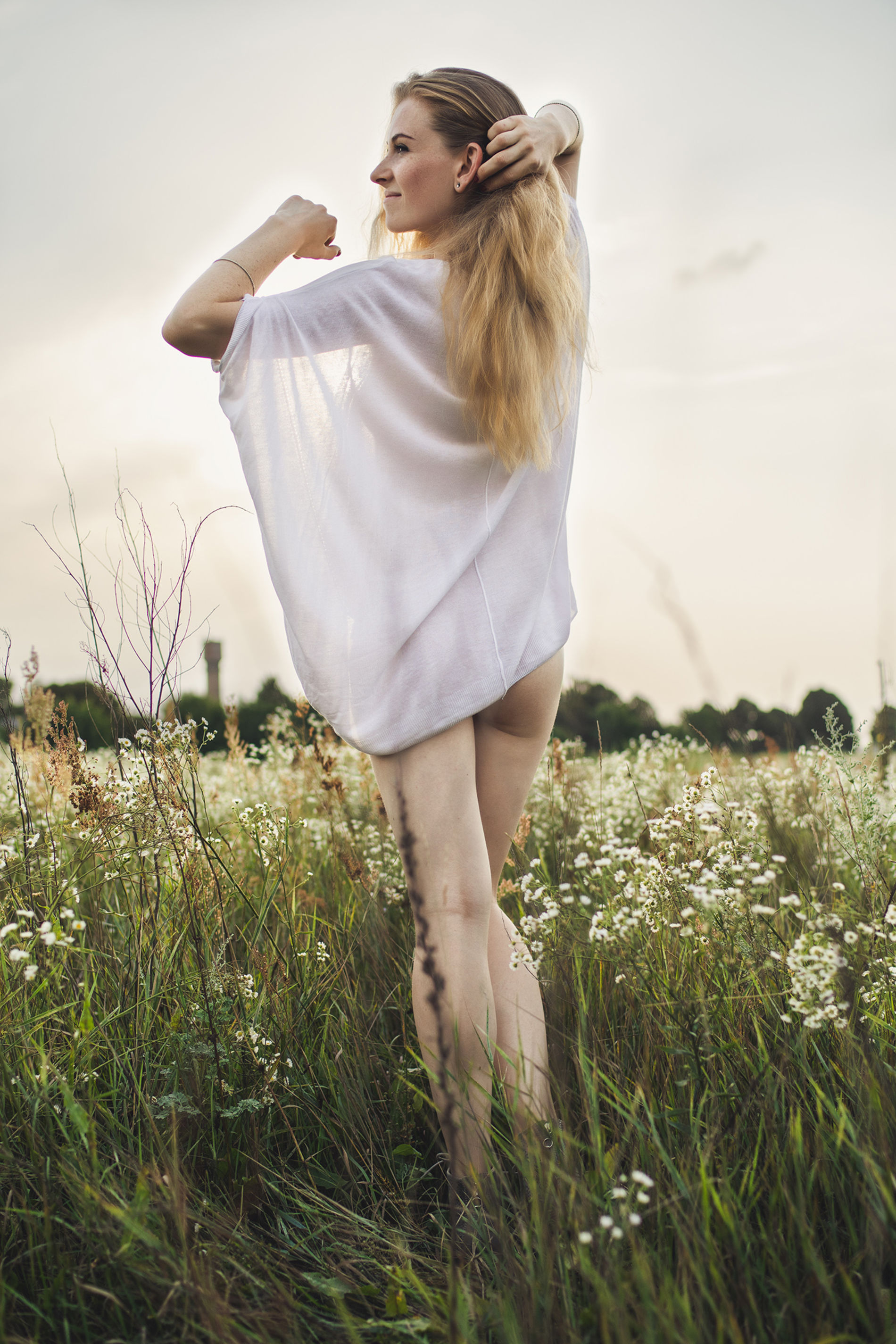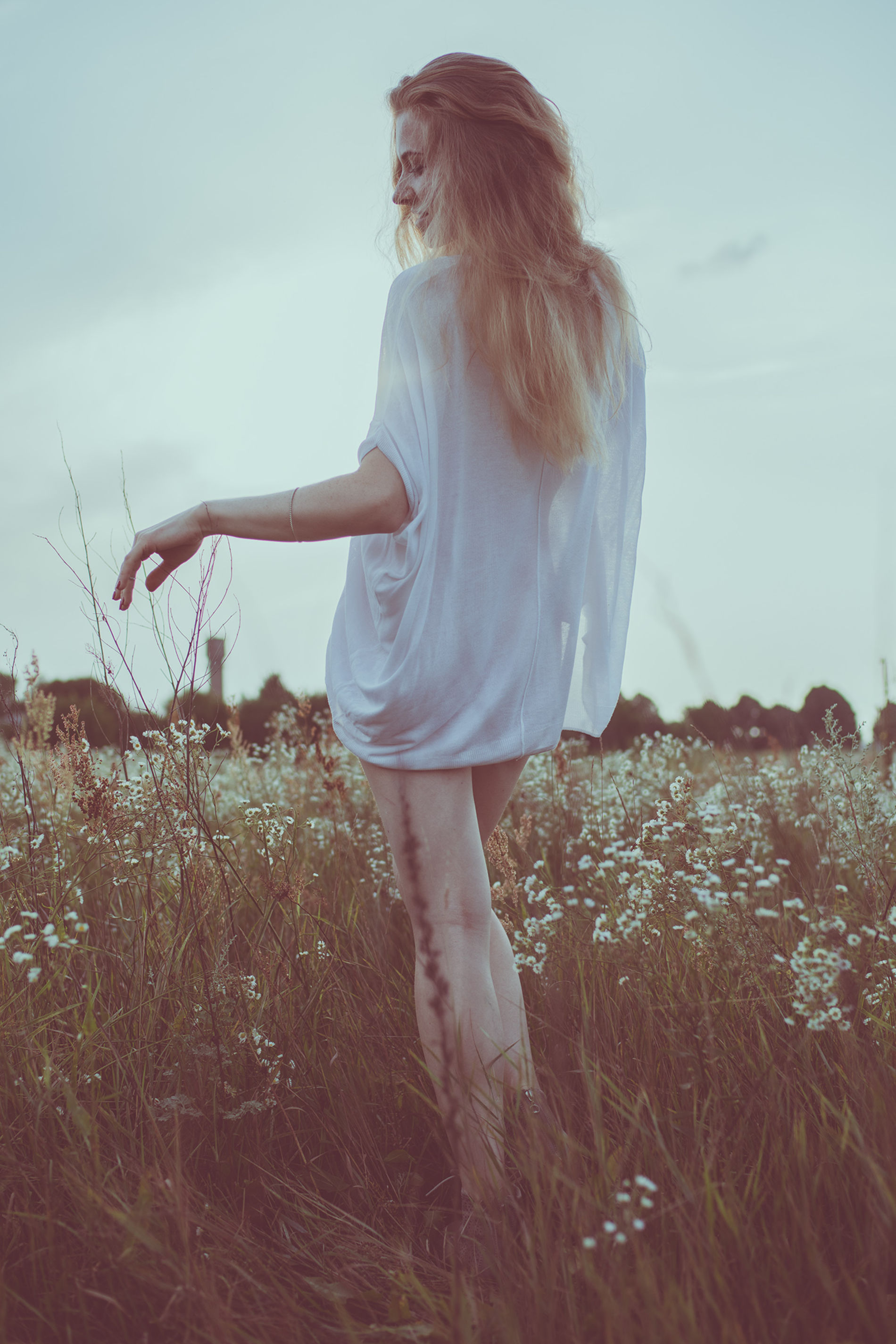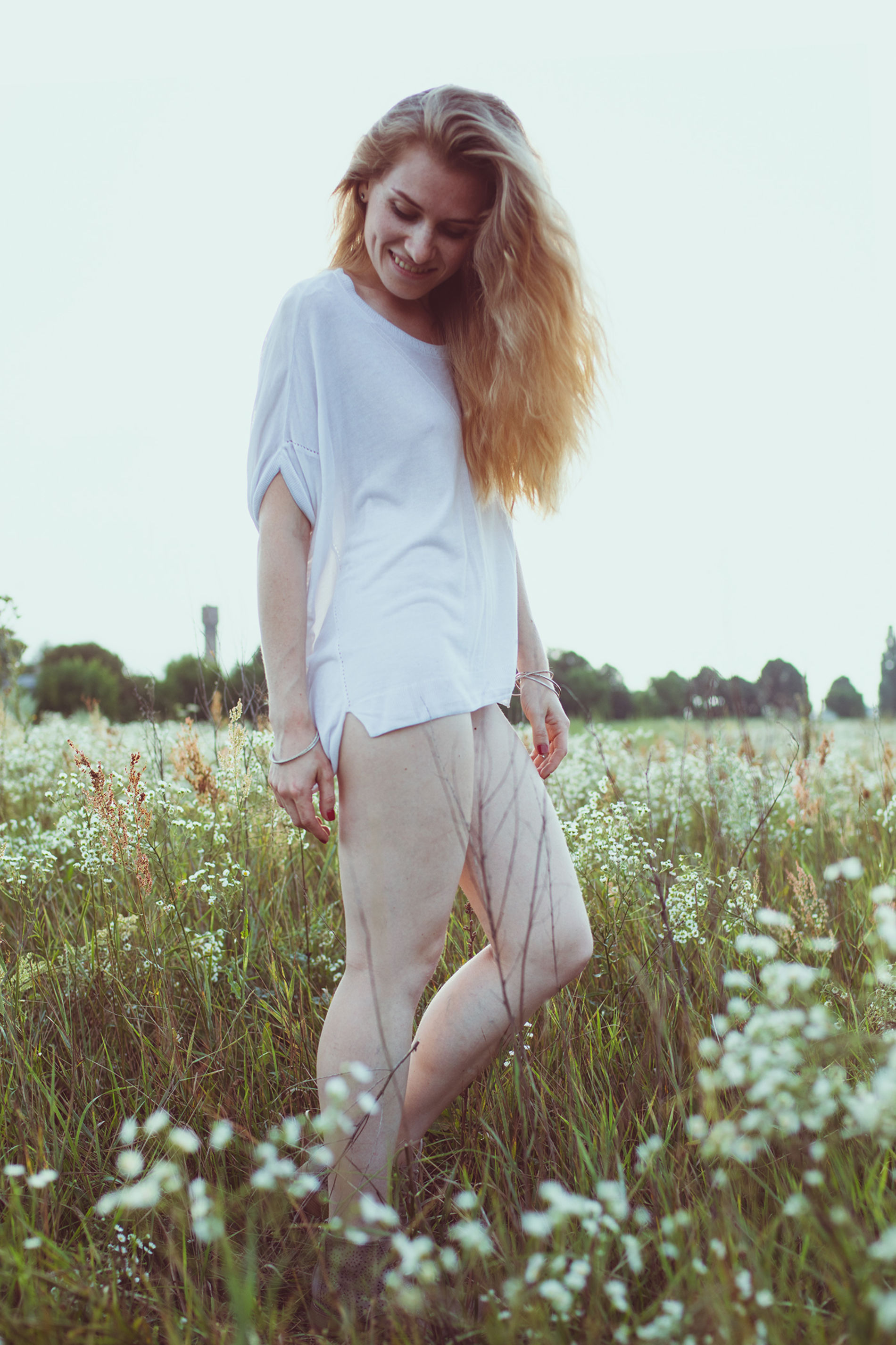 Блондинка на цветочном лугу