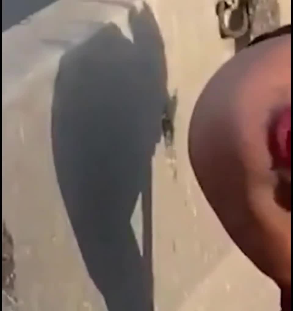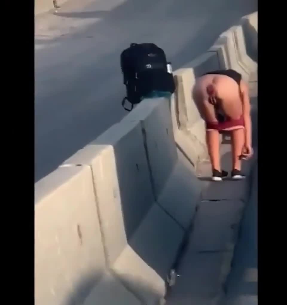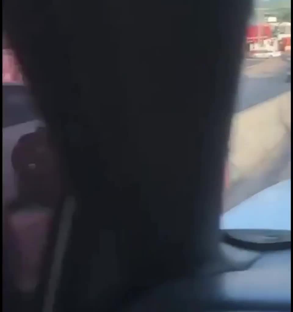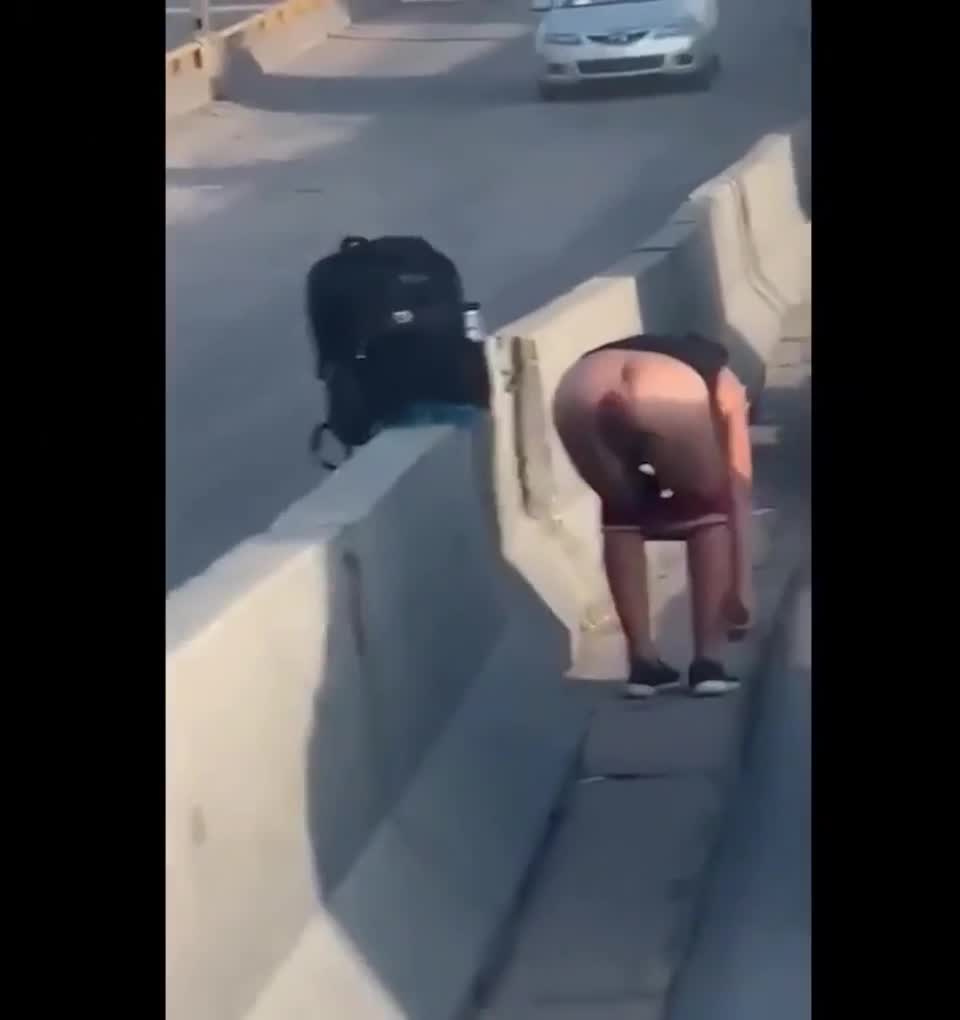 В пробке на шоссе женщина имитирует проезд на красный свет, демонстрируя свою толстую кишку, выпирающую из огромного ануса.
