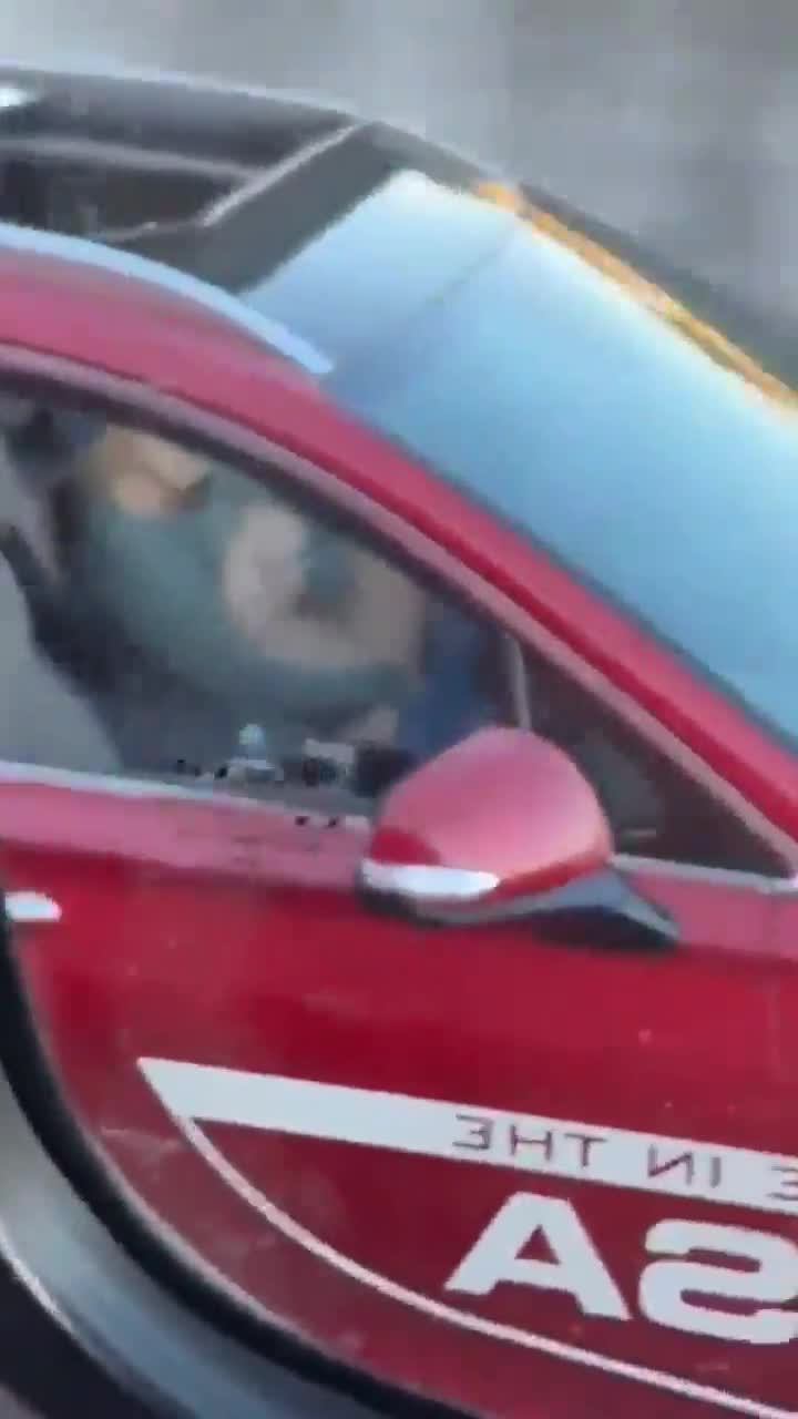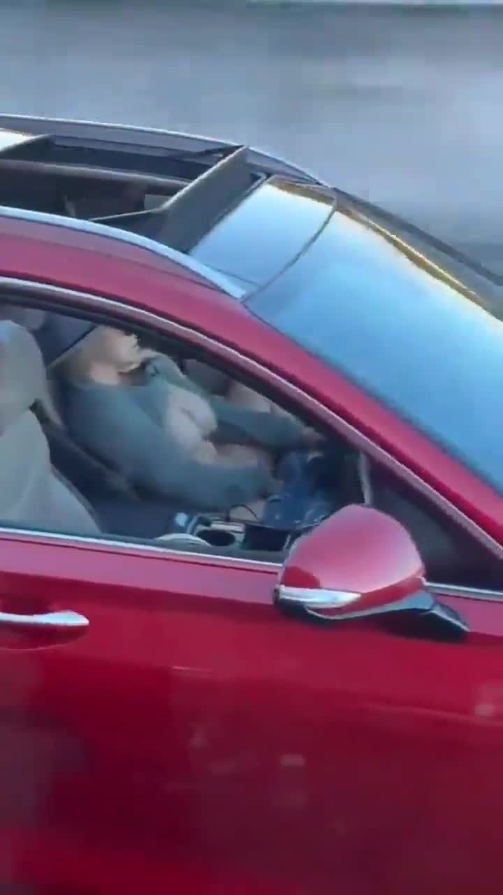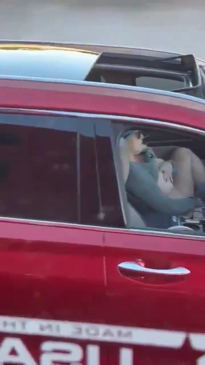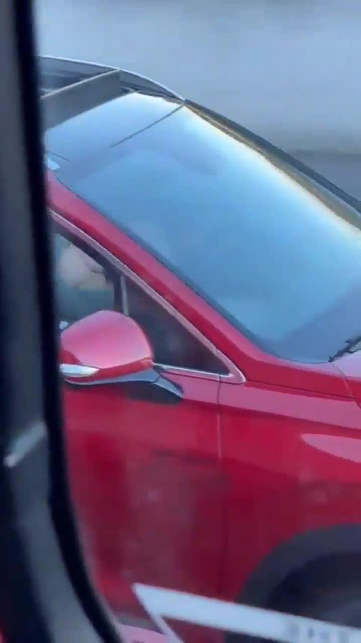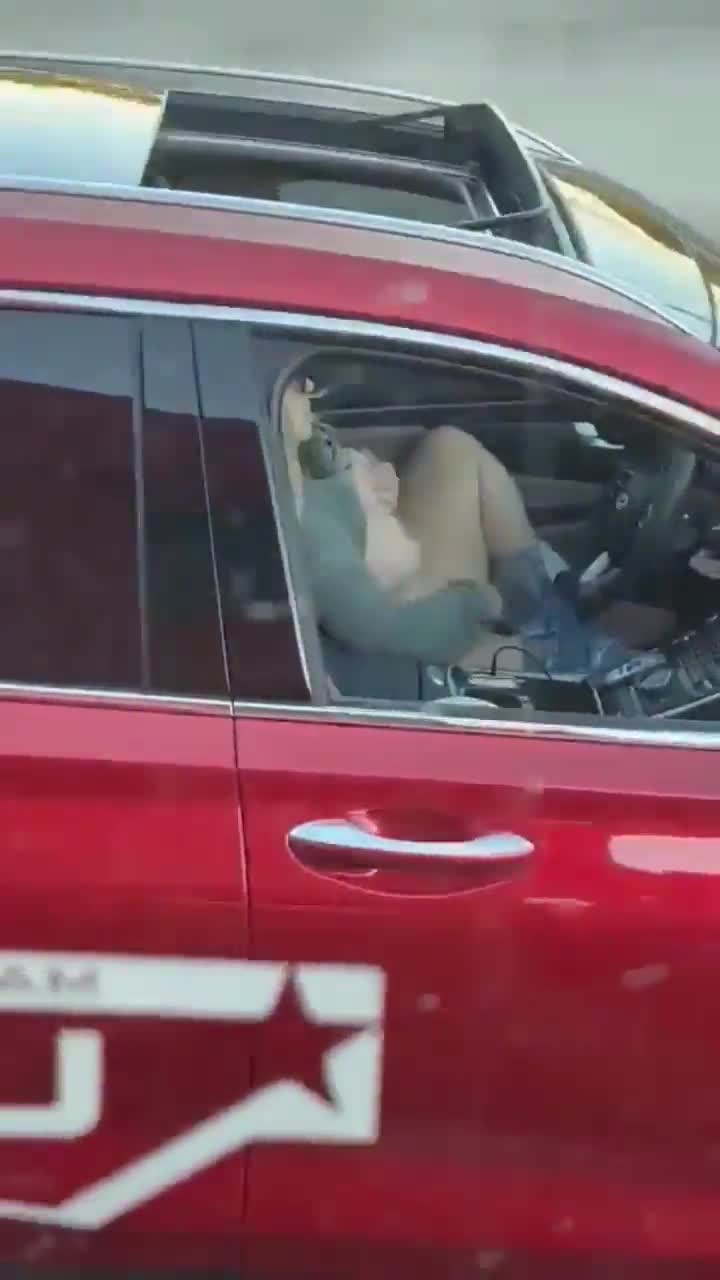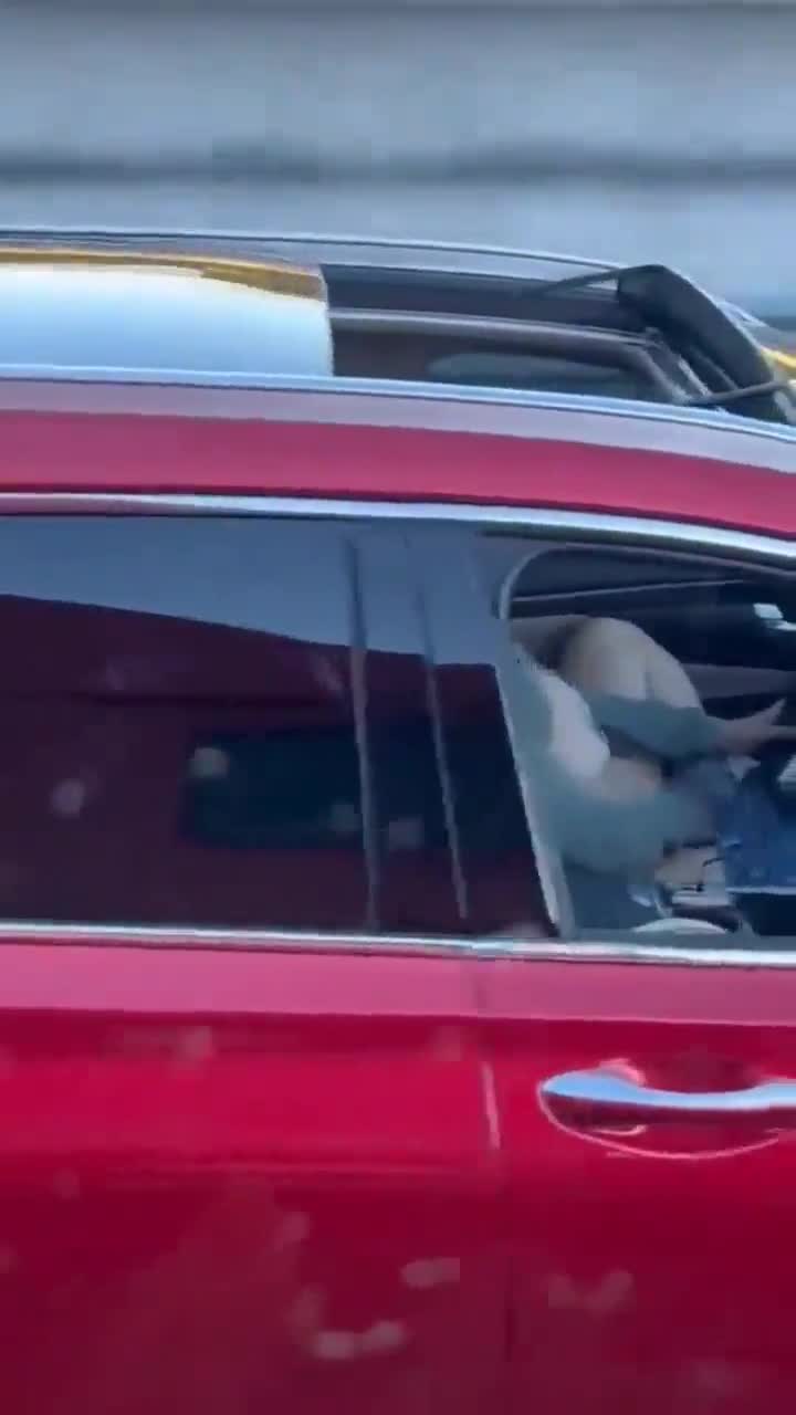 Женщина в красной машине почувствовала потребность в оргазме во время поездки, а места для парковки не было.