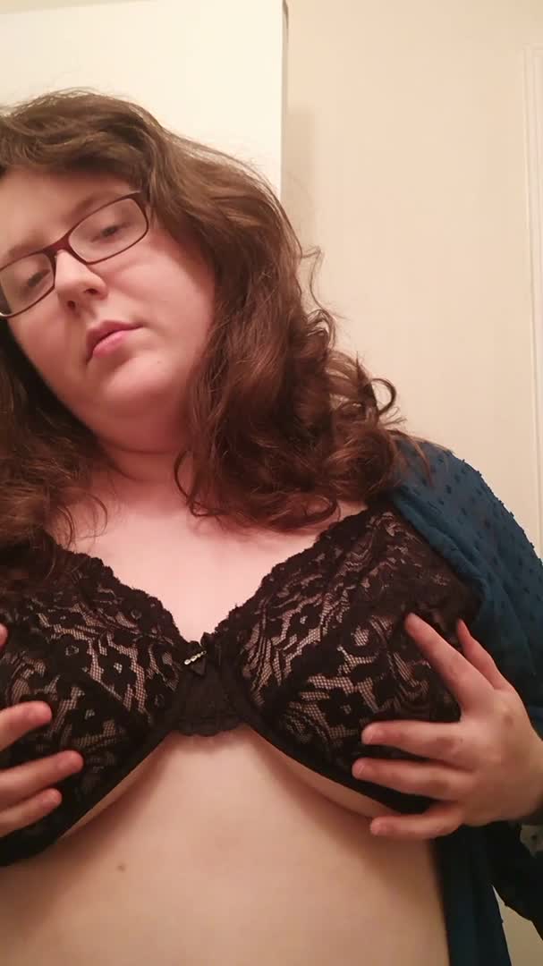 Полная девушка в очках грациозно продемонстрировала свою грудь.