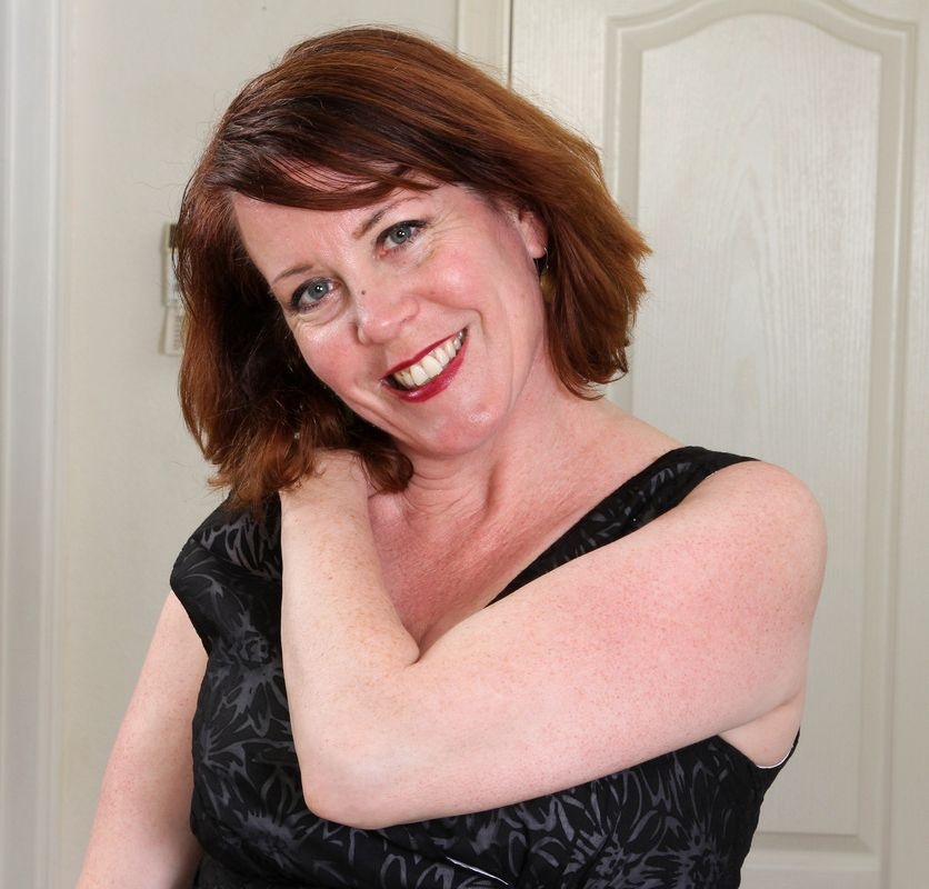 Немолодая, весьма позитивная медноволосая мадама демонстрирует свою очень даже эффектную фигуру. С такой тётей не грех согрешить! Не так ли? На закуску - самое сладенькое (см. последнее фото). Всем - приятного просмотра!