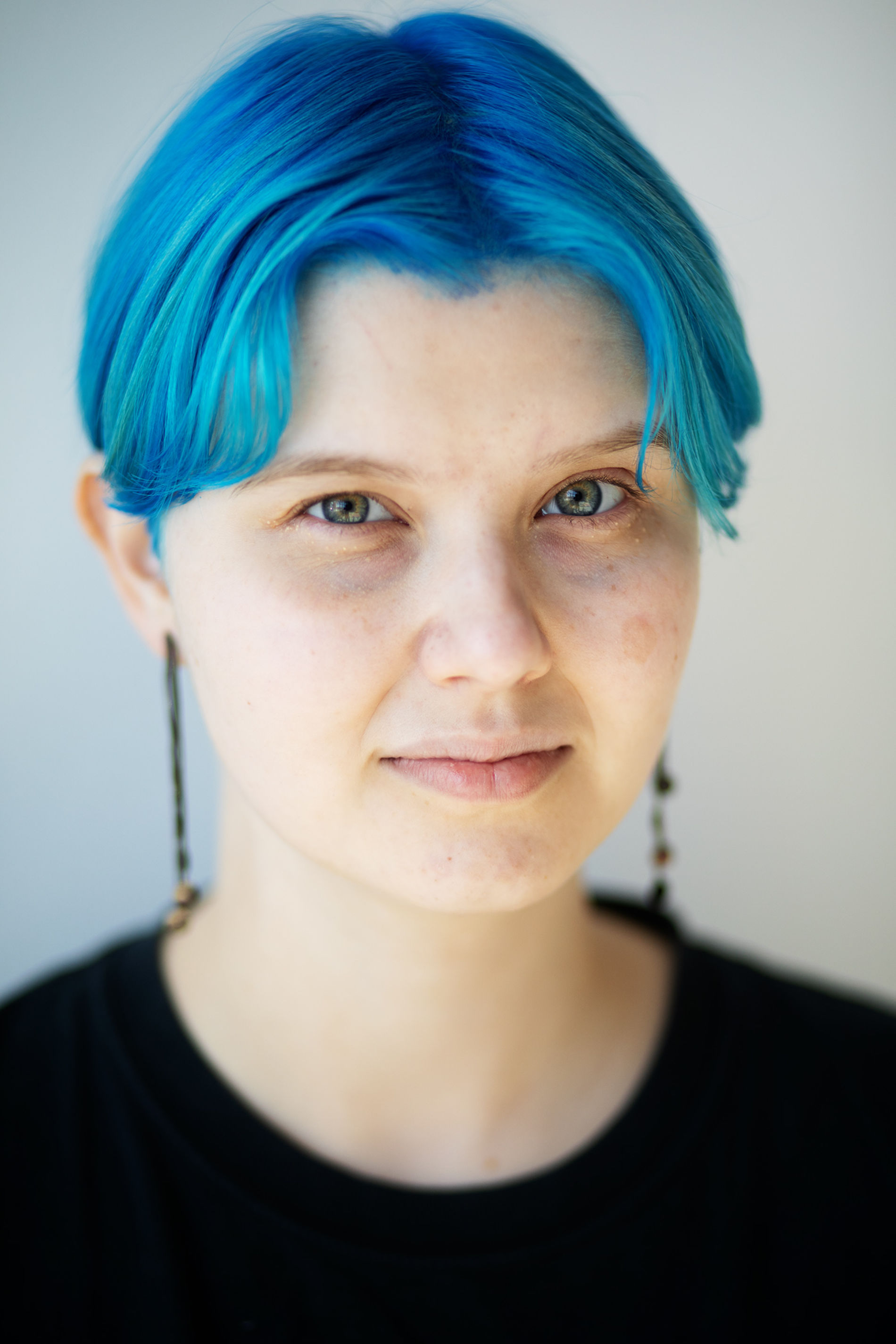 Девушка обладает обычной красотой, но её необычная причёска интригует.