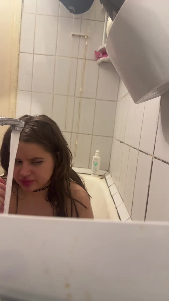 Девка в ванной ведет прямую трансляцию, пьет вино и обсуждает текущие дела с подругой