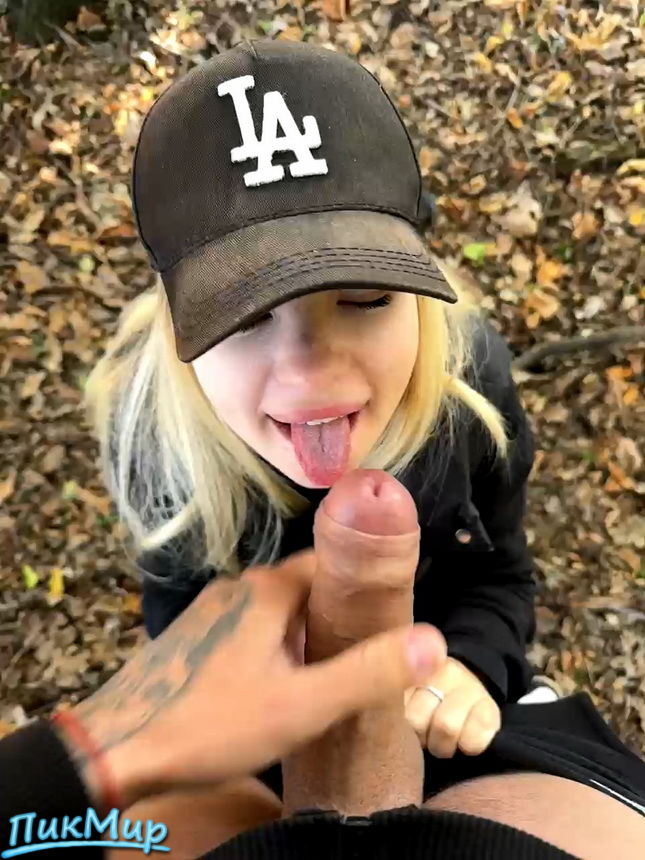 Девушка сосет парню на природе и позирует с игрушкой в пилотке