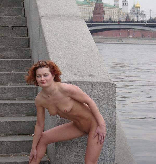 Хороша стройная рыжая кудряшка позирующая обнажённой у Москвы-реки!