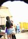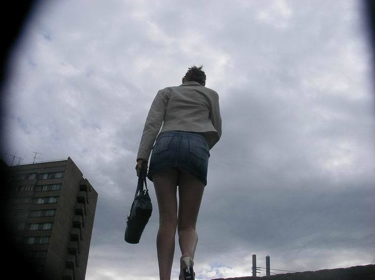 Преследователь достиг своей цели увидев её трусики под юбкой!