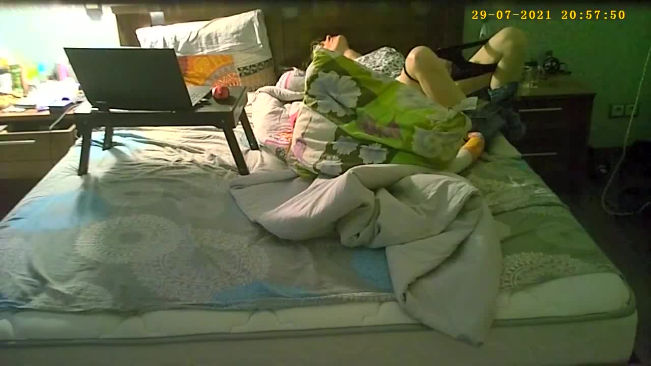 Женщина мастурбирует вибратором не зная о скрытой камере в спальне.